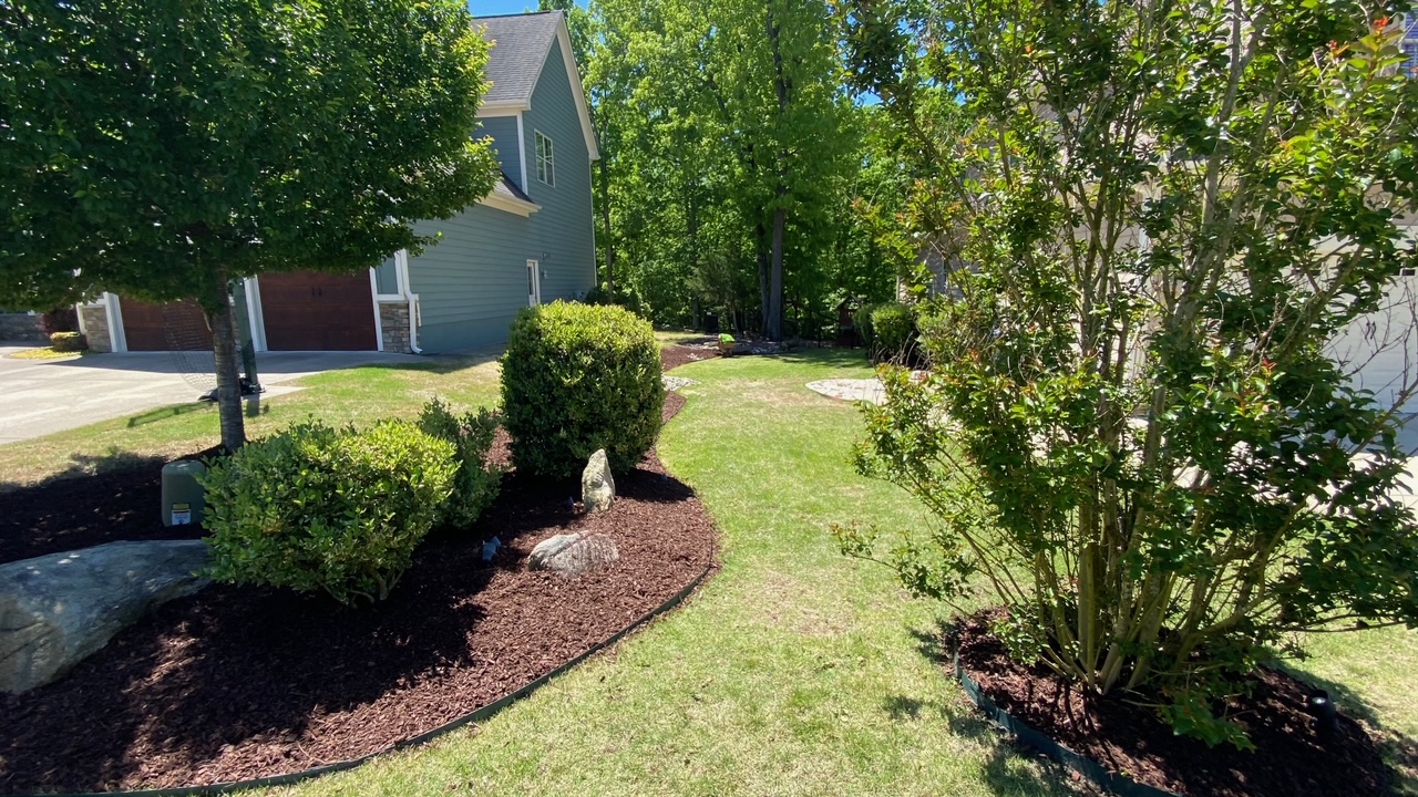 Mulch helps prevent weed growth, retains soil moisture as well as preventing evaporation. Your beds can't take them hot Summer days in North Carolina without mulch! Keep that soil cool and help protect them plant roots, not to mention its appearance. Beautiful beds help your lawn and house look its best. We also offer pine straw, stone, wood shavings, and more bed fillings to help with the decorative touch.